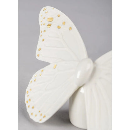 Butterfly Figurine - Golden Luster & White (Lladro Special Order)