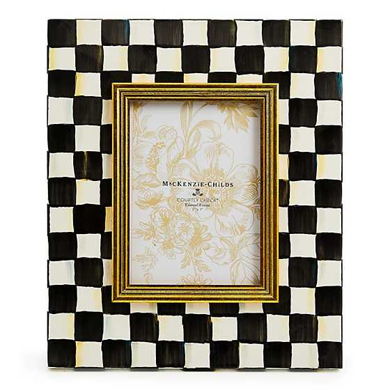 We’ve yet to find a photograph that doesn’t look fabulous in a Courtly Check® 5" x 7" Enamel Frame. Pepper these into your family photo gallery or give one as a standout gift for a friend. Steel underbody with hand-painted Courtly Checks®. Backing is black linen with a brass logo plate.