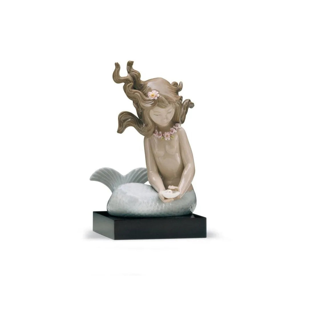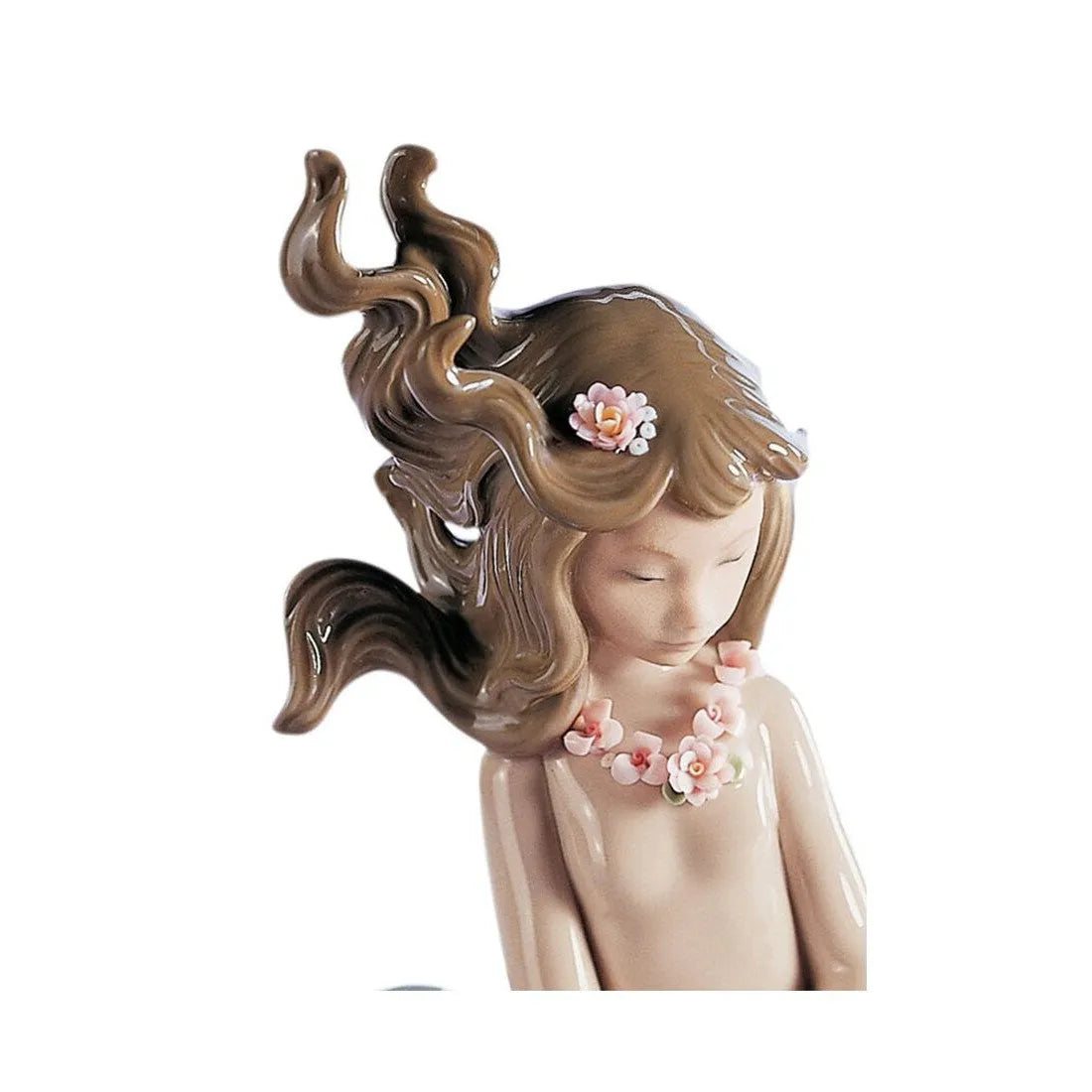 Of all the mythological beings, none have captured the human imagination quite like the mermaid. These enchanting creatures evoke fascinating marine worlds and wonderful adventures in the depths. A glossy porcelain piece, decorated in soft pastel colours and delicate flowers, ideal as a gift, collectible or decoration.