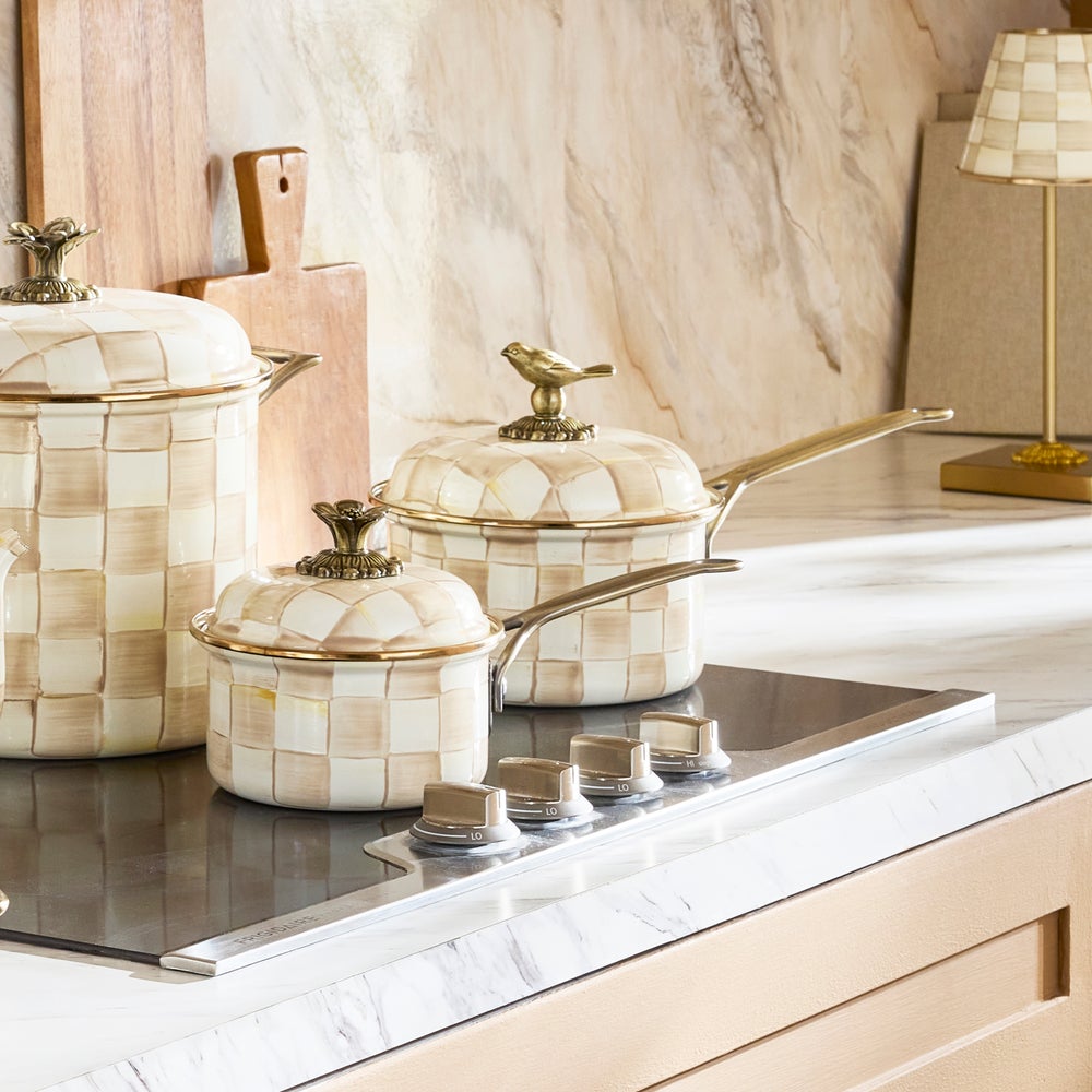 Mocha Check 2.5 Qt. Saucepan (Mackenzie Childs)
