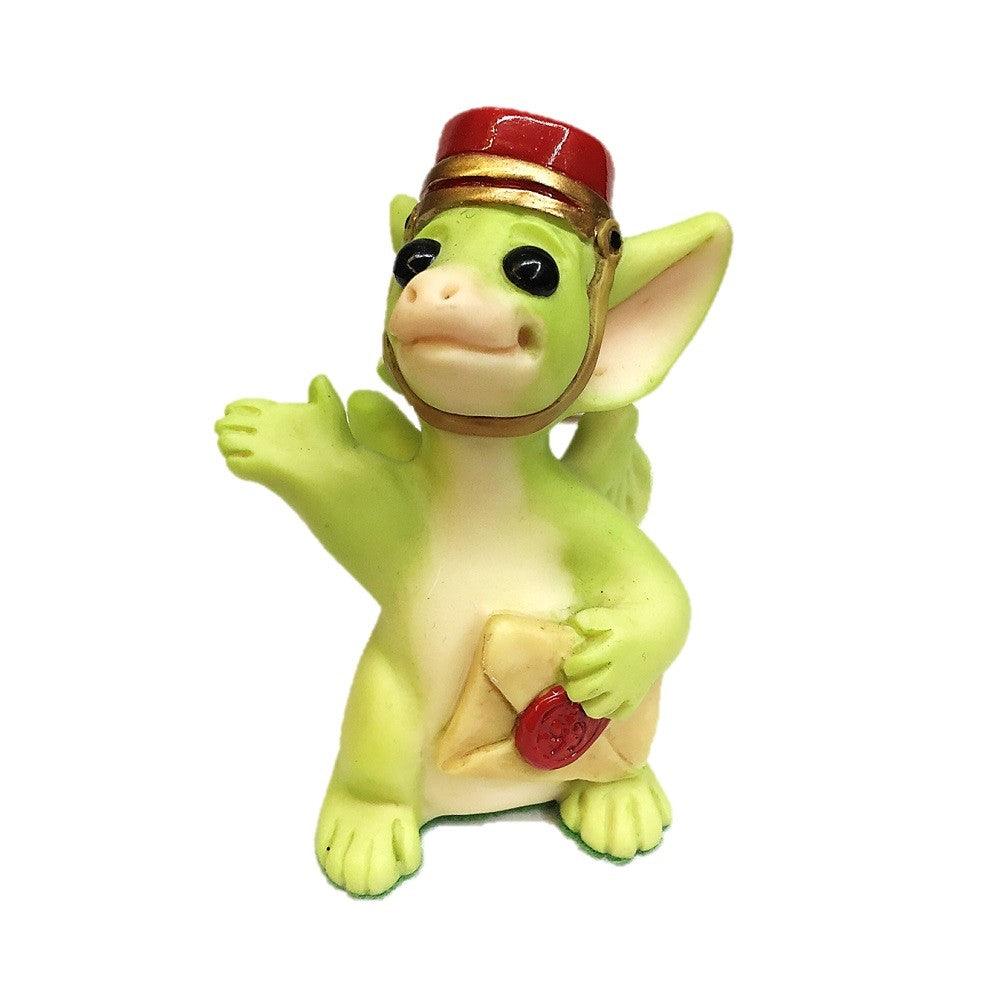 Little Pocket Dragon dressed in a cut uniform and delivering mail. Notice how all pocket dragon names are playful wording on what is going on in the piece it self!