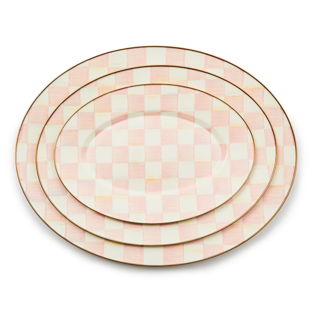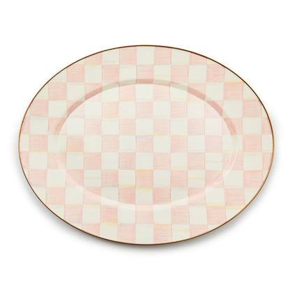 The Rosy Check® Large Oval Platter is a great addition to the dinner or buffet table. It features checks hand-painted in a range of rosy hues over a steel underbody and is trimmed with a bronzed stainless-steel rim.