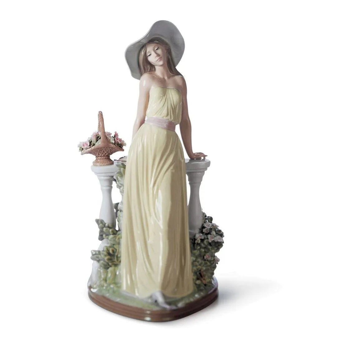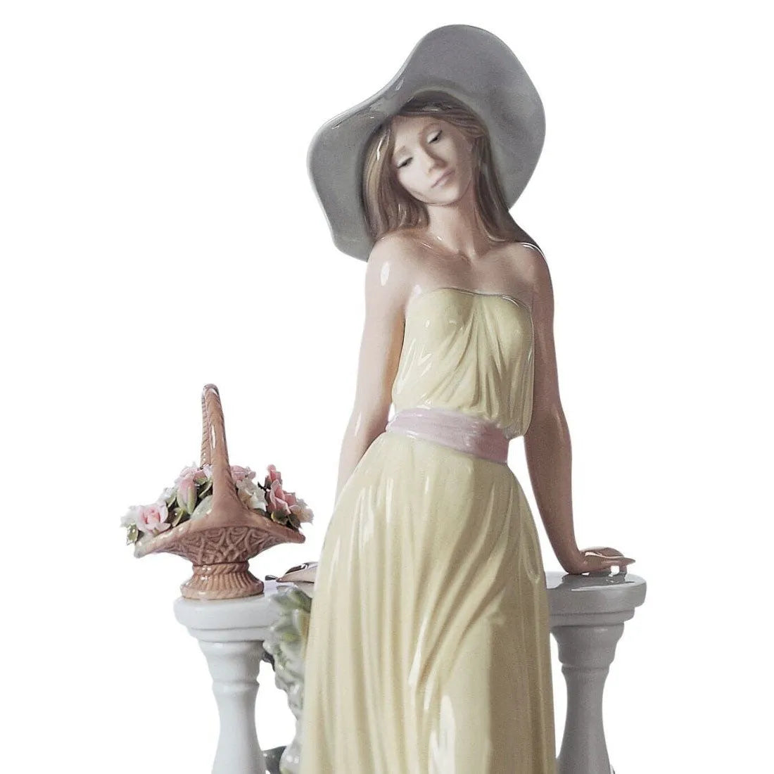 A perfect representation of the classic elegant ladies of Lladró, melancholic and sweet, beautiful and sophisticated, the inhabitants of a world of fantasy and romanticism. A glossy porcelain piece, decorated in pastel colours, ideal as part of a collection, as a gift or as a decoration.