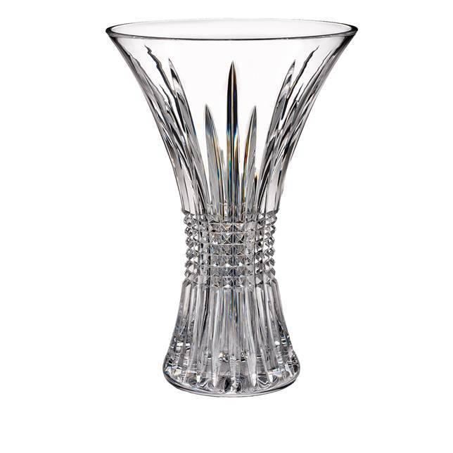 Perfect for displaying a floral bouquet or two dozen roses, this Lismore Diamond 14in Vase beautifully showcases its contents. The combination of its tall, 14in profile and enchanting flared rim enables cut flowers to stretch out into their surroundings, producing an eye-catching display of colour that breathes life into your home. Elegantly contemporary, the grid-like cuts produce striking punk studs that draw gazes, whilst the clarity and brilliance of this fine crystal vase puts the spotlight on your blooms and bouquets.